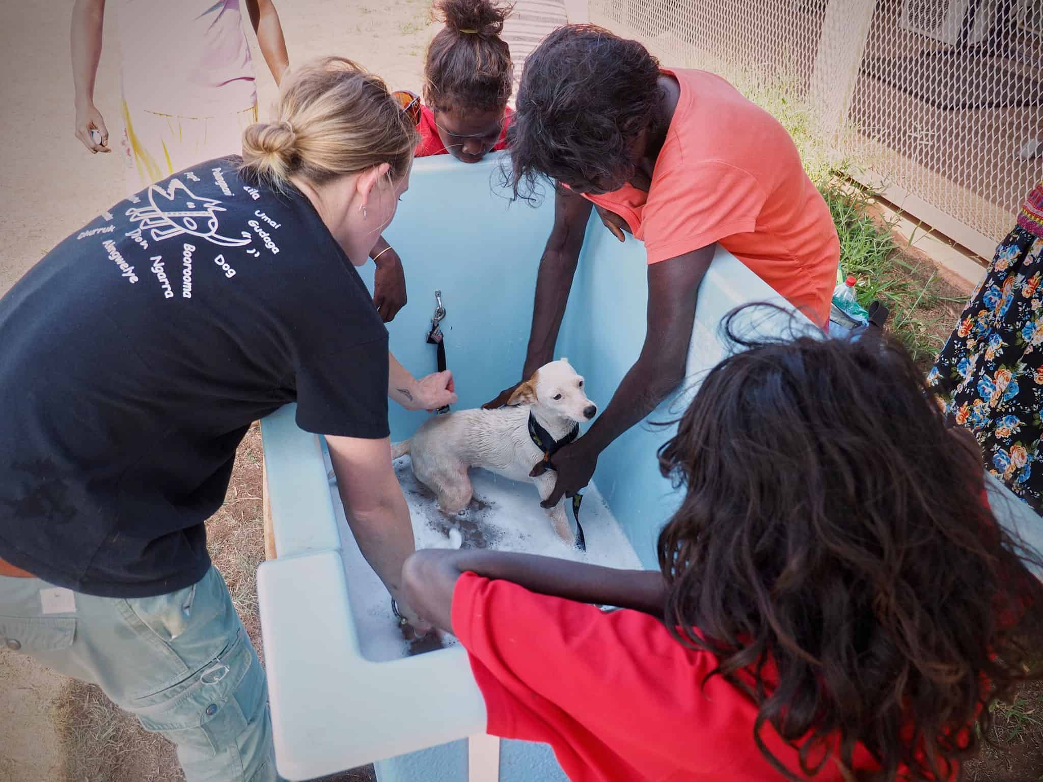 While AMRRIC’s work has a veterinary focus, all AMRRIC’s activities are underpinned by One Health values, leading to collaboration with medical, public health, environmental health and conservation professionals, for better outcomes for communities and their companion animals. For example, in a veterinary program at Cherbourg QLD, AMRRIC collaborates with The University of Queensland School of Veterinary Science, Darling Downs Public Health Unit (Queensland Health) and Cherbourg Aboriginal Shire Council. Animals diagnosed with high parasite burdens are treated with broad-spectrum anti-parasite treatments, but importantly, their owners are also notified of the diagnosis and, with the owner’s consent, the local health clinic also informed. This transdisciplinary collaboration between human and animal health services is helping to address zoonotic diseases and create better health outcomes for both people and their pets.