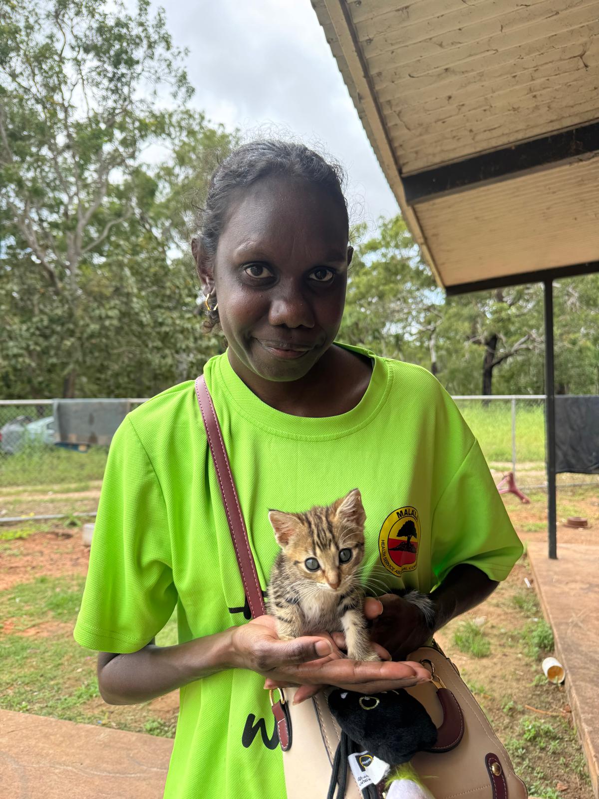 Mala’la Health Service Community Health Worker Kylena, assisting the AMRRIC team to undertake animal health checks and distribute anti-parasitic treatments.